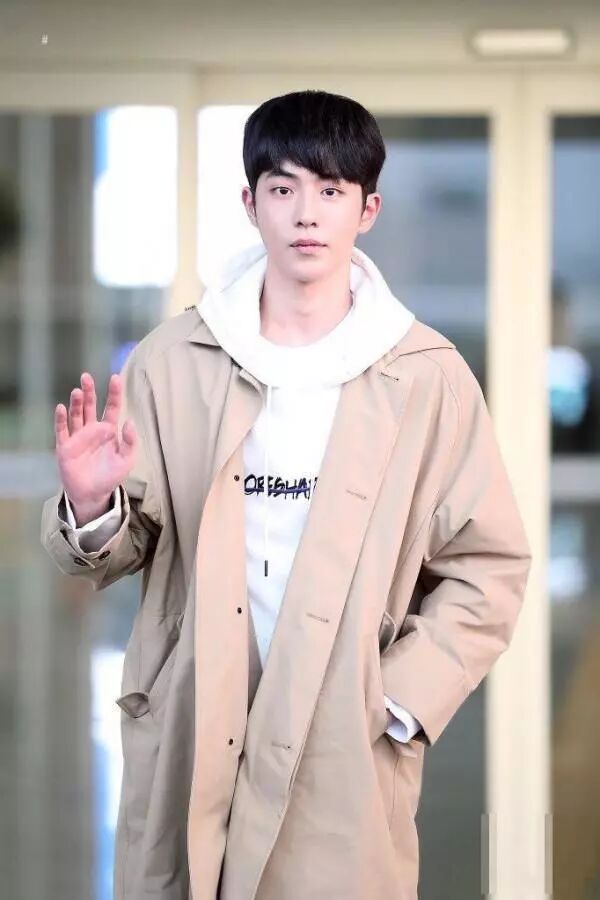 ▲南柱赫身穿驼色风衣搭配内搭白色卫衣,清新又阳光,文艺男青年就是你没错了~