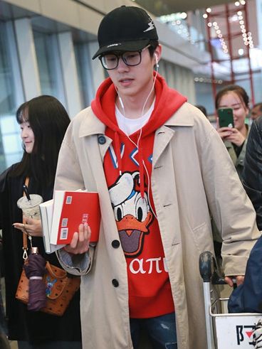 ▲在秋冬季节要想穿得好看,就要掌握“叠穿”技巧。刘昊然在北京机场的街拍,身着Burberry长风衣,搭配Gucci红色印花连帽卫衣,充满了童趣。