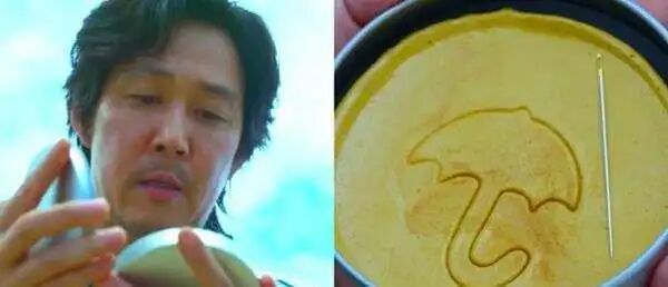 但实际上,椪糖的原产地并不是韩国,而是中国。椪糖最早起源于中国宋代,是一种宫廷糕点,制作方法是将红糖与砂糖混合加热熬成糖浆后,再加入小苏打不停搅拌,直到膨胀冷却后形成的甜食。就连“椪”这个字,都是福建方言。传到北方后,人们更习惯叫它大梨糕、梨膏糖,后来日本也学到了这类糕点的制作工艺,方法稍有改动,叫“轻目烧”、“焦糖饼”。而《鱿鱼游戏》仅仅通过暗戳戳的模糊化处理,就将它硬生生“洗”成了韩国小吃。
