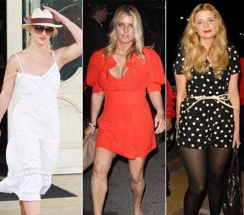 可是,这两位偏偏要穿白色的衣服,布兰妮的白色吊带裙就像睡衣,配雪地靴真不知道是怎么想的!jessica simpson的白色蕾丝裙虽然外面加了件外套,但是依然难掩她臃肿的体型,失败!
