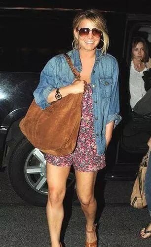 如果你的手臂和上围比较丰满,就千万别再穿泡泡袖的衣服,那样只会使得你的上半身更加粗壮。布兰妮的浅色上衣,搭配黑色legging,掩盖了肥臀粗腿,可是袖子却会使上臂更粗。辛普森的V字领本来对于胸部过于丰满的人来说,可以减少胸部的饱涨感,但是泡泡袖和高腰的设计,却使上围更加丰满了!!
