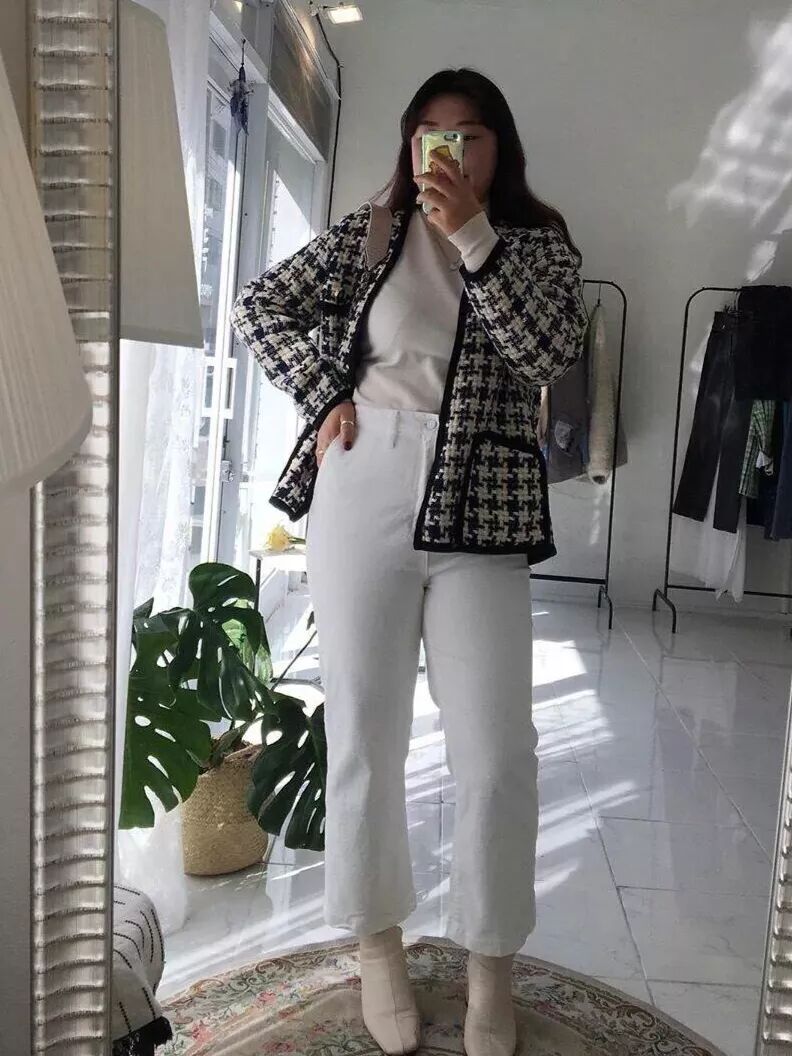 带着细闪的小香风外套,优雅中不失甜美,轻奢感十足,胖女孩穿它超级显气质哦!