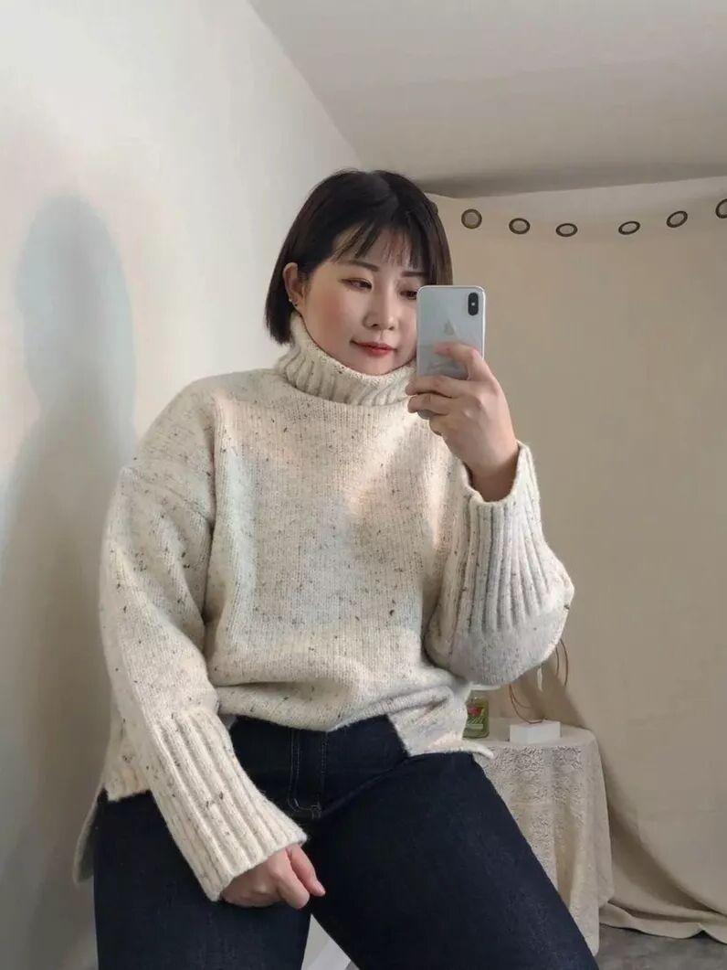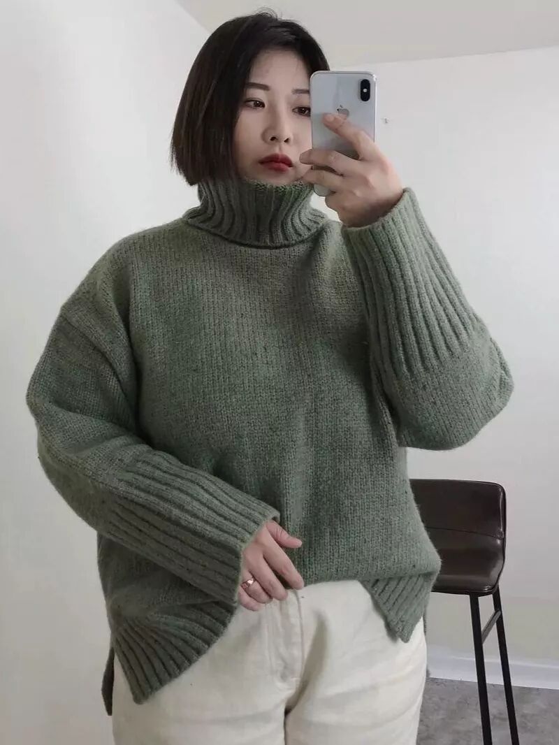 高领的打底毛衣,既可以单穿又可以作为打底,穿上它温暖又舒适,而且宽松的版型还自带慵懒的风情,建议收藏一件哦!