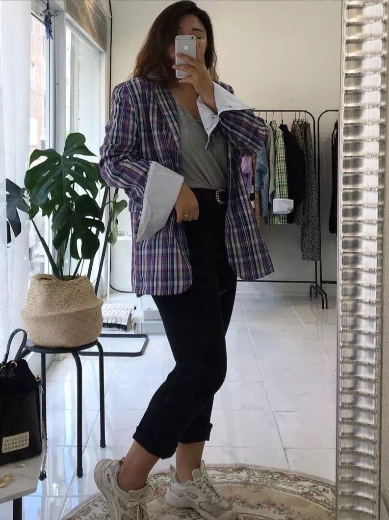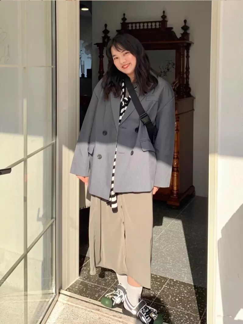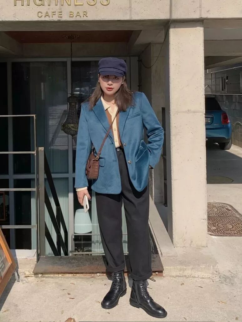 不想要色彩鲜艳的宝贝们呢,也可以选择这种色彩饱和度低的西装外套,与秋冬的颜色相协调,复古迷人的同时又不缺帅气。