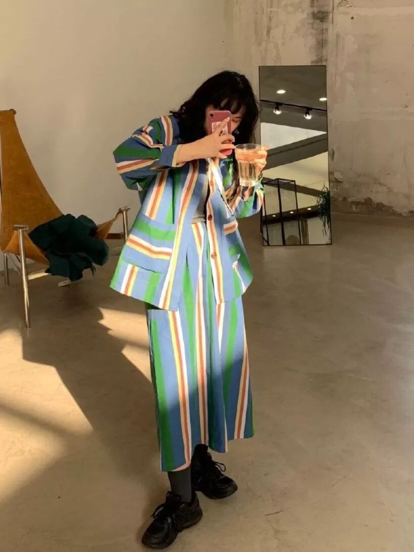 色彩鲜艳的西装外套,在饱和度整体偏低的秋冬,穿上它会显得整个人青春又活力哦。