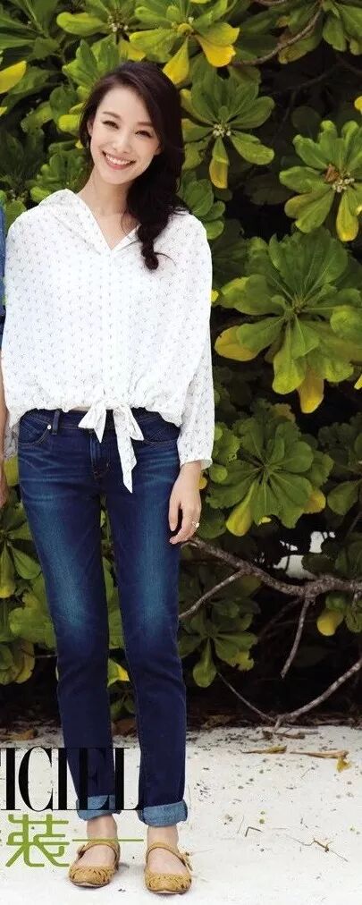 同是标准体中间型的倪妮这么粗的脚踝,露出一点点更细的小腿会显得脚踝更粗,不如裤管宽一点,还会不那么显眼。