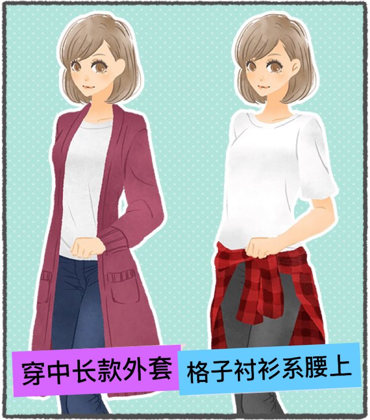 标准体中间型的人髋骨有厚度,有些是真胯宽,有些是假胯宽,所以用上面两个小方法就能完美遮挡啦。
