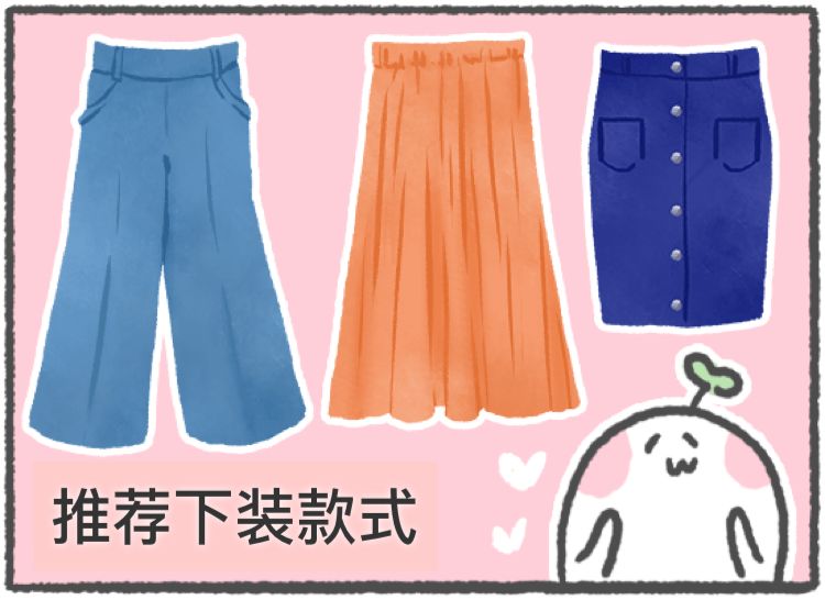 虽然推荐给标准体中间型的下装如下: