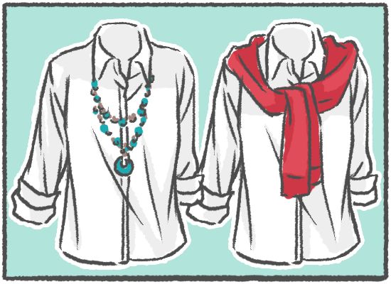 看似太普通板正的衬衫也可以通过加长项链或者是把针织衫毛衣系胸前制造出慵懒的时尚感。