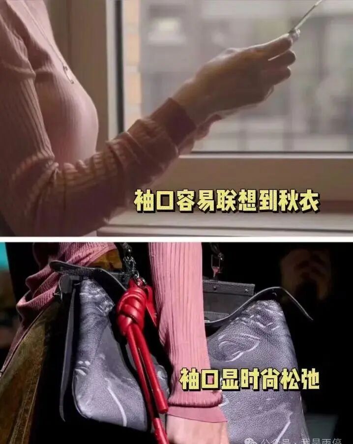 袖口变窄,刚好束在手腕上,看着就像秋衣。这么一想,就离时尚远了,毕竟时尚得有点与众不同嘛。