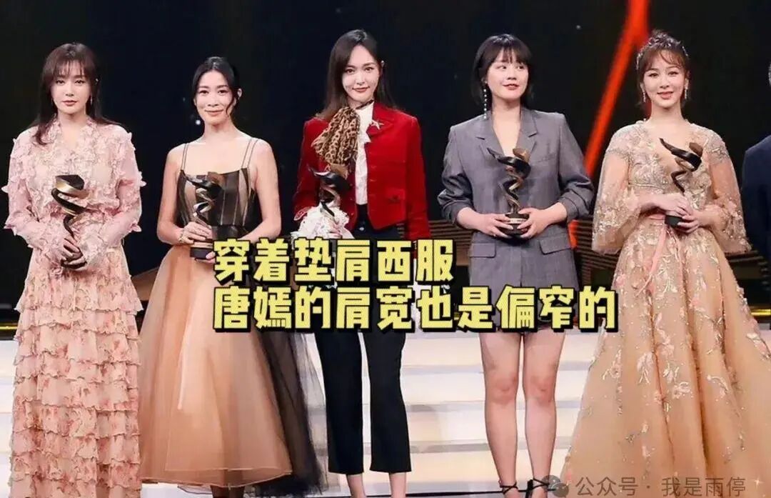 吐槽完那些奇葩单品,咱们还是聊聊正经穿搭吧~ 唐嫣,个子172,体重才43kg,特别瘦。她的骨架在女明星里算小的,你看她和别的女艺人合照就能看出来??