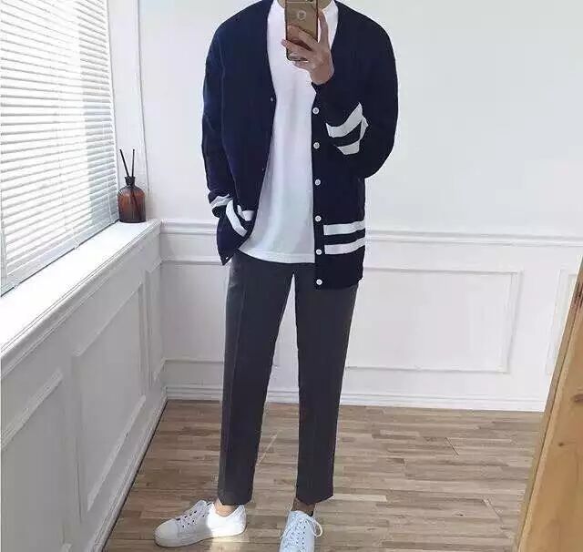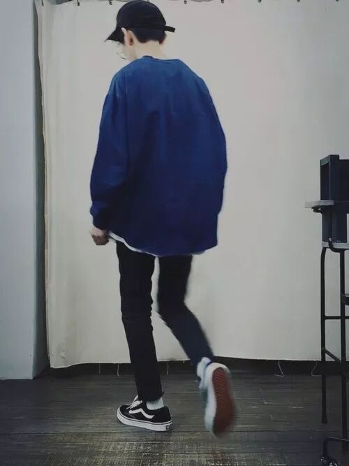 老规矩裤脚roll一roll,再配上帆布鞋,