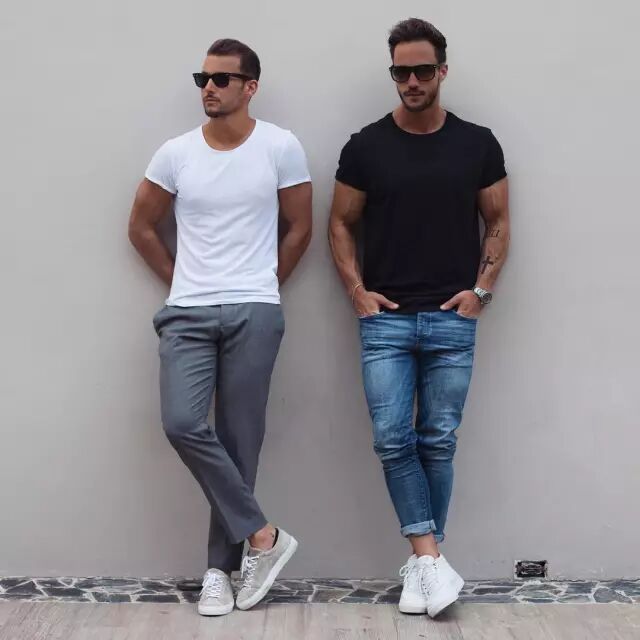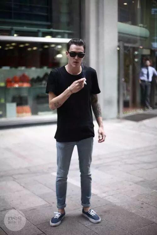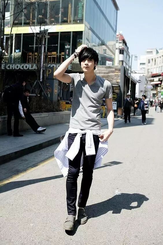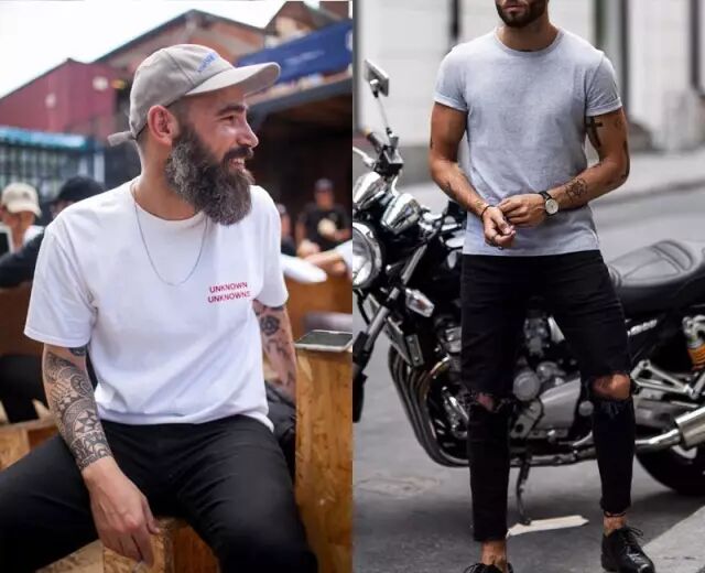 而那种修身的T恤,还是留给有肌肉的男士吧,而你们哪怕不怎么喜欢锻炼,我也建议你们可以去练练上肢,穿衣服真的会更好看。