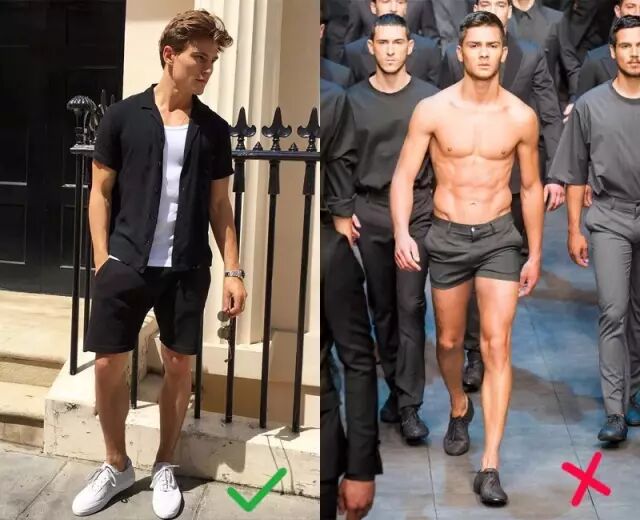 太短NG,太长同样不可以。很多男士觉得男人穿短裤就是要过膝才man啊,结果那种又大又长的中裤穿起来完全没有时尚可言。可能你看到也有人穿好看的,那么一定是他们的小腿足够长,不然腿会看起来又粗又短。