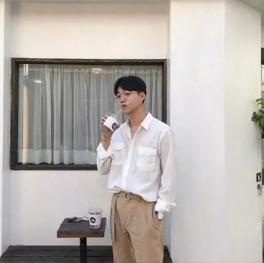 白色的翻领衬衣搭配了杏色的休闲裤,腰部用了一根同时各的腰带做搭配,整体的造型就是很文艺气质的造型,尤其是适合走这一类风格的男生。简约的颜色以及款式的搭配,都完全的彰显了男生本来的时尚感。