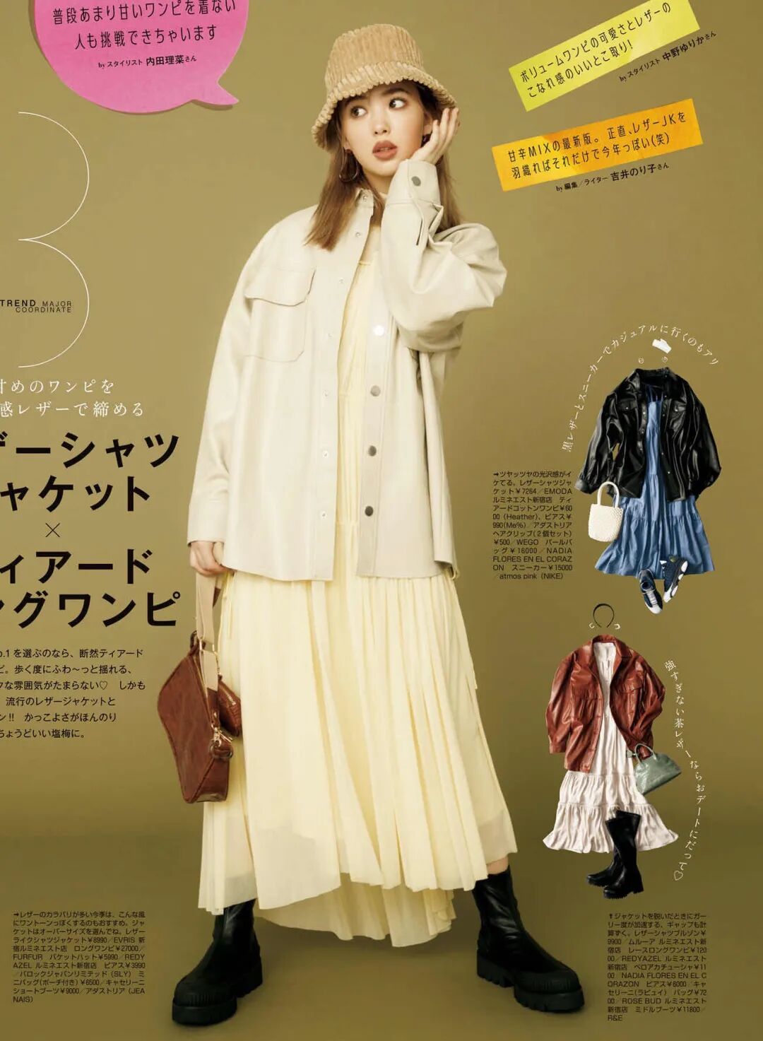 焦糖色宽松毛衣+黄色半裙,洒脱而轻松,淡然自若里显得很高贵。一身慵懒而又有型的穿搭,散发迷人的魅力。
