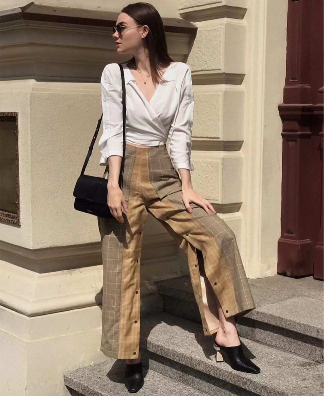 衬衫+长裤,这个穿法,特别能像彰显出知性气质和女人味。现在的天气属于微凉,适合现在天气的款式,交给阔腿裤再合适不过。