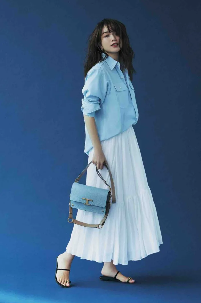 颜色的搭配也很重要,那么,为什么要“碰撞”颜色呢?“碰撞”颜色可以通过颜色来彰显出你的时尚感,让秋冬季的衣着造型不再沉闷。蓝色衬衫+白色半裙,显得很清新又高级!
