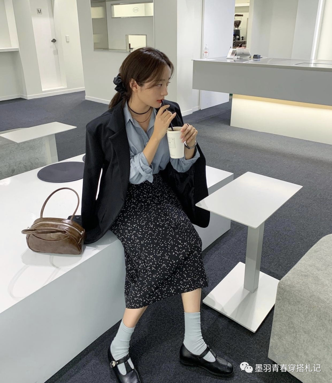 之所以能够把基础单品打造得更时髦,是因为时尚博主们懂得举一反三,比如一件普通的翻领衬衫,其他人只会搭配西装外套,但是时尚博主可以利用这种衬衫,来打造甜美风格,结合碎花半身裙,让穿搭看起来更有女人味。