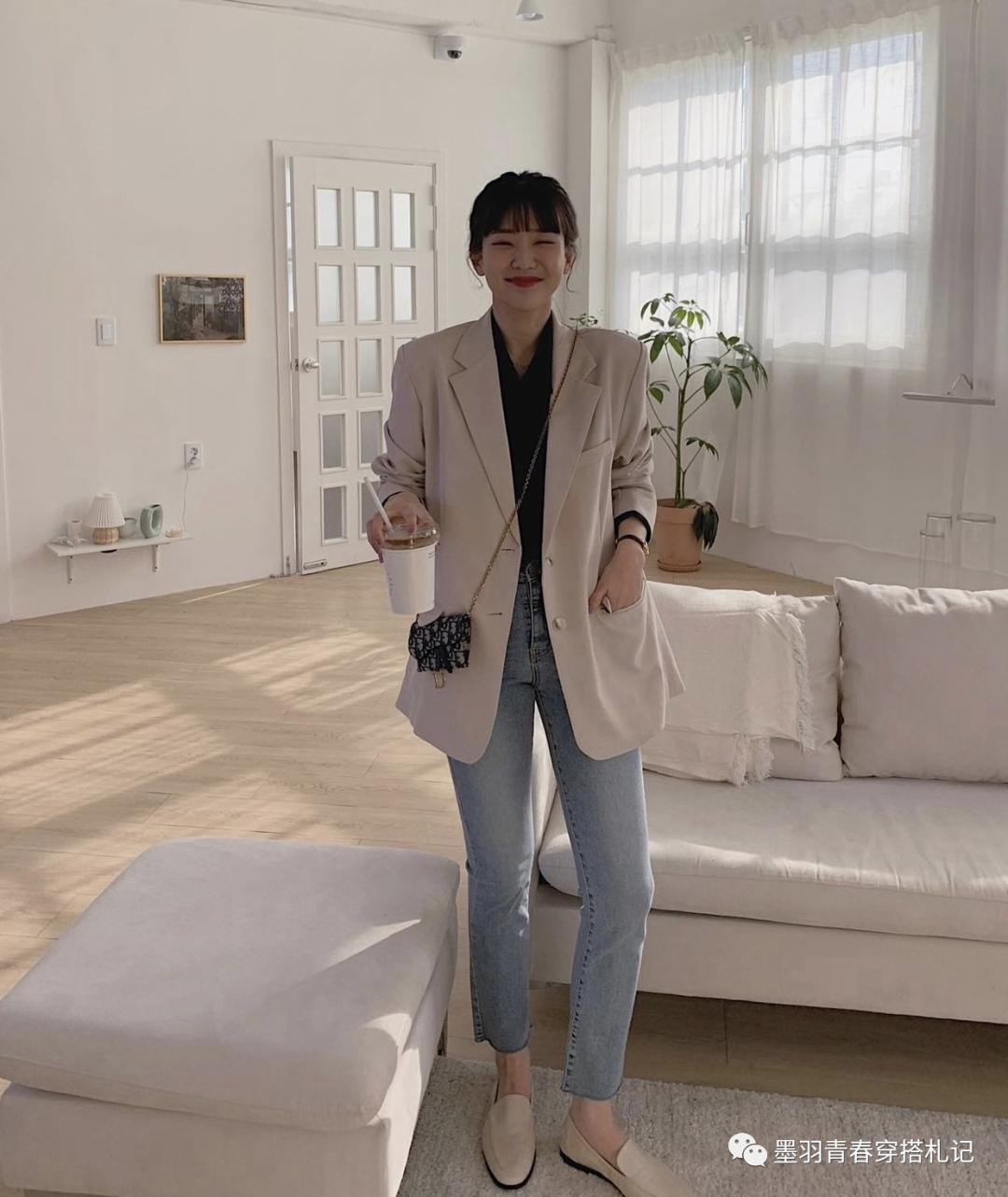 除此之外,如果是搭配西装外套,会选择不同的搭配方式,不会利用衬衫搭配半身裙,而是半身裙或者牛仔裤,从而打造休闲风格,这样举一反三的搭配方式,会让基础款衬衫变得更实用。
