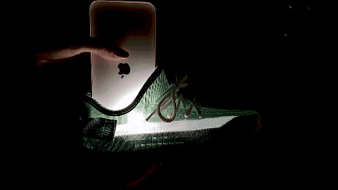 我们拿来手电筒做了一下实验,发现,光束一穿过鞋子,整个鞋子的空隙全都看得见!