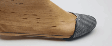 而这款飞织鞋我们在制作椰子鞋经验基础上设计了“尖头”收脚鞋型。