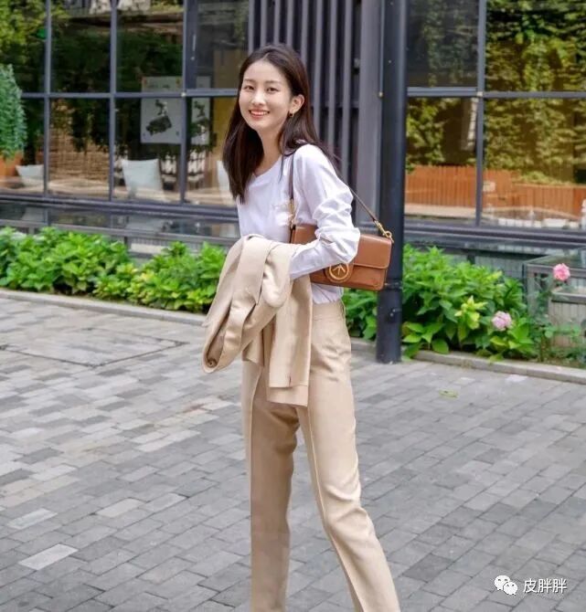 如果没有硬性要求的话,这类似的穿搭作为职业装也是可以的,为了让整体穿搭造型更有时尚感,还可以选择合适的挎包来搭配,能让简约的穿搭更有看点。