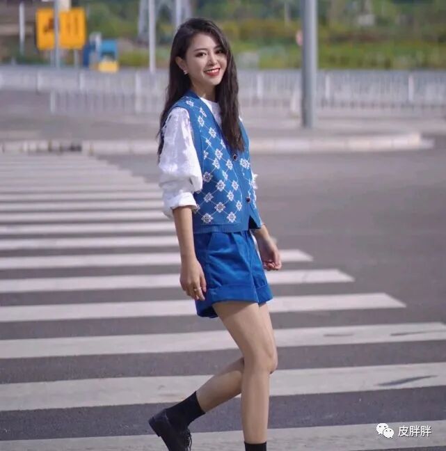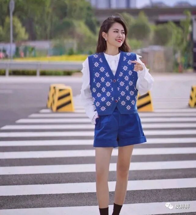 就像这位时尚博主的这身穿搭就很好看,她选择了一件简简单单的蓝色针织开衫搭配蓝色半截裤,给人一种套装的既视感,并且穿出了利落又清爽的感觉。