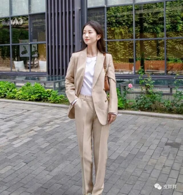 不过这类似的穿搭也可以作为职业装,但不太适合作为比较正规的正装,如果是作为正装的话,可以选择常规设计的白色衬衫作为内搭,再选择一双尖头高跟鞋来搭配,就会显得很有气场。