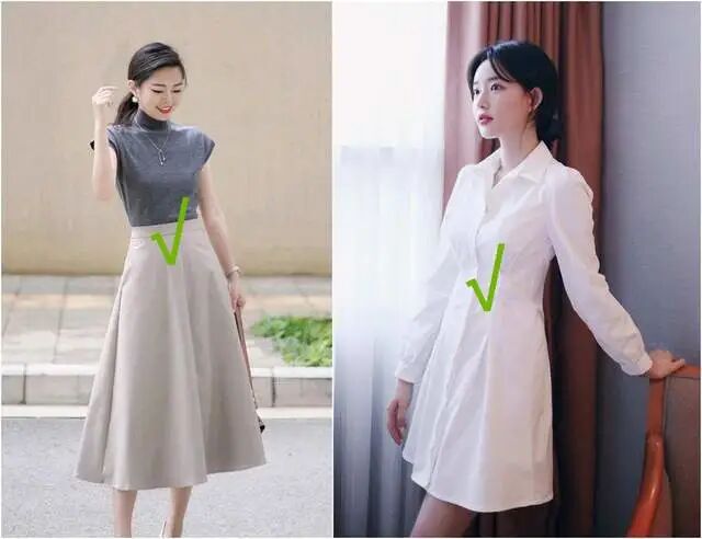肚子上的赘肉伴随着腰身变粗,这时候就应该提高腰线,借用高腰线来遮挡这个问题。一定要选择腰线在肚脐以上的连衣裙,或者要搭配尽量高腰的半身裙去搭配。同时还要加宽裙摆,选择腰线高、细,裙摆稍微外扩的裙子,遮赘肉的效果会翻倍。