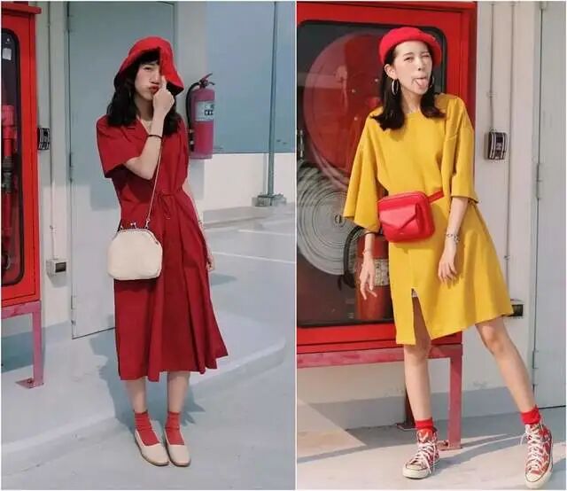 颜色很艳俗的裙子都是比较扎眼的,不太日常的荧光色或者过于鲜亮的大红大紫色等,都不适合年长型的女性去穿搭。随着年龄增长且肤色暗沉感增加,穿这些颜色的裙子会让肤色显黄、显黑不止2个度,气色也会变得暗淡很多。