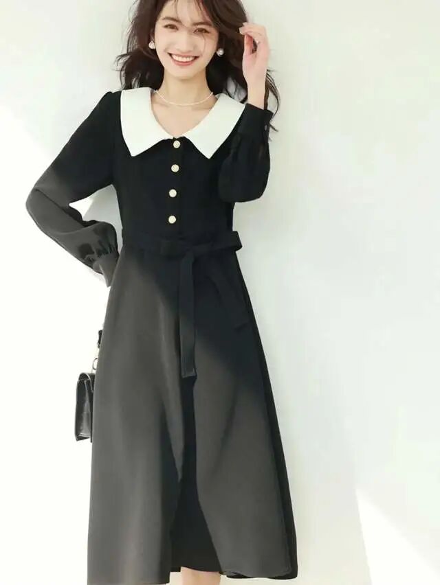 比如这条复古感强的黑白拼色连衣裙,自然彰显的就是复古的韵味。那么我们可以借鉴利用珍珠材质的配饰去点明整体的风格。珍珠的耳环和项链修饰在身上,让原本的黑白色也不再暗淡,同时让整体的复古感也不断加强,气质翻倍的节奏。