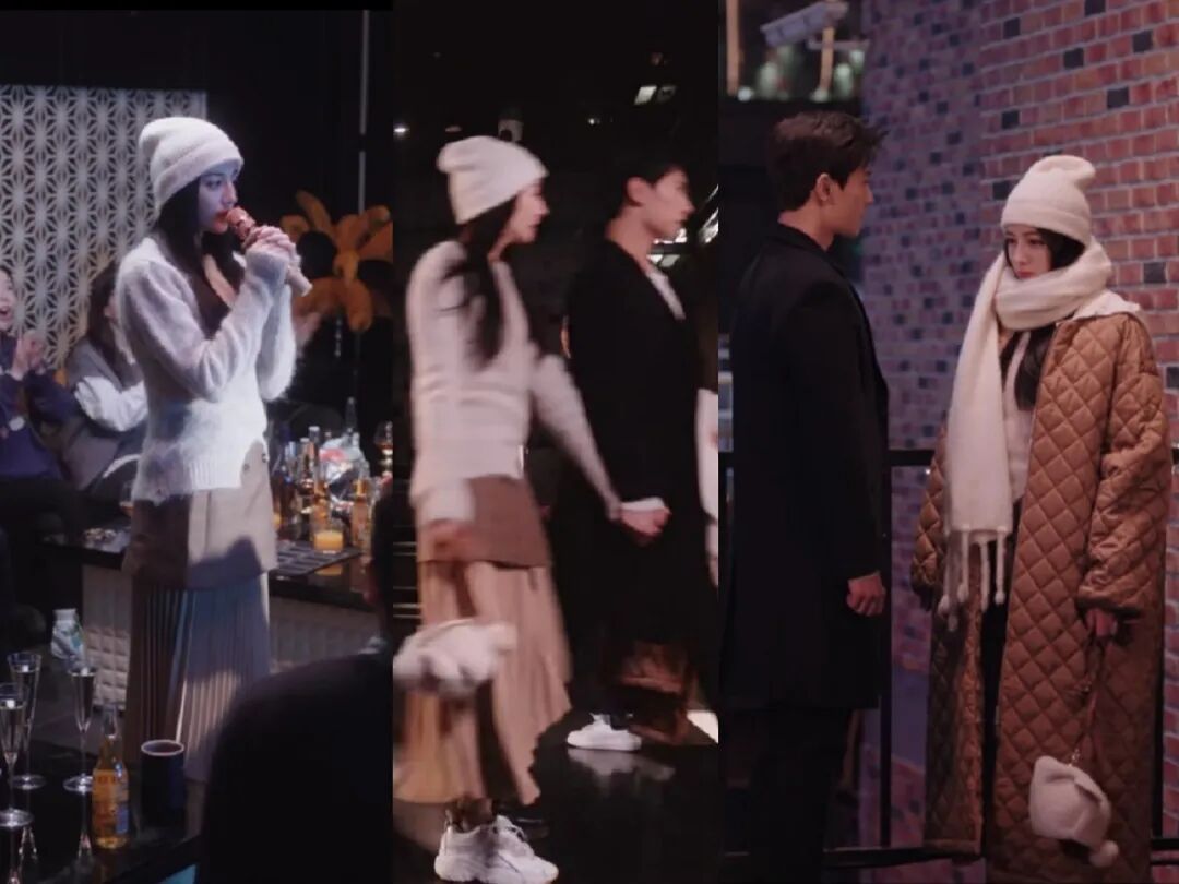 乔晶晶春节回老家过年,主动参加了一场同学聚会,KTV里没有穿外套,被于途拉走室外天冷就穿上外套。一身米白和卡其为主的温柔配色,毛衣与裙子很有层次感,帽子、围巾、包包都是同色系,整套搭配又温柔又高级。衣服叠穿制造层次感,整体穿搭看起来又高级又有气质。