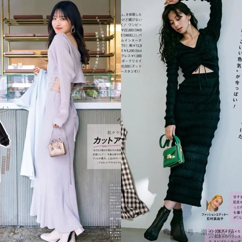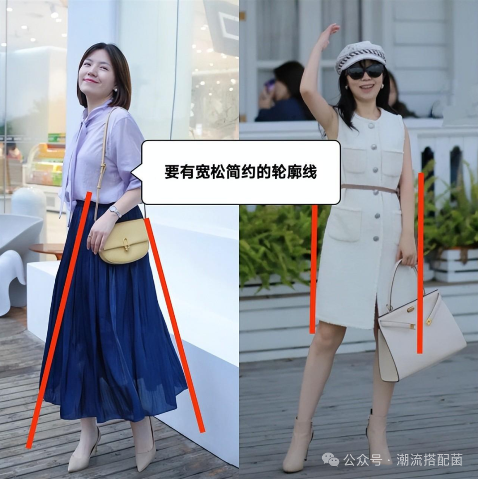 就像这种连衣裙,腰间可以稍微收缩起来,把我们的小蛮腰凸显出来,但是裙摆又不能太紧,适度的宽松一些,对于改善比例会更好。