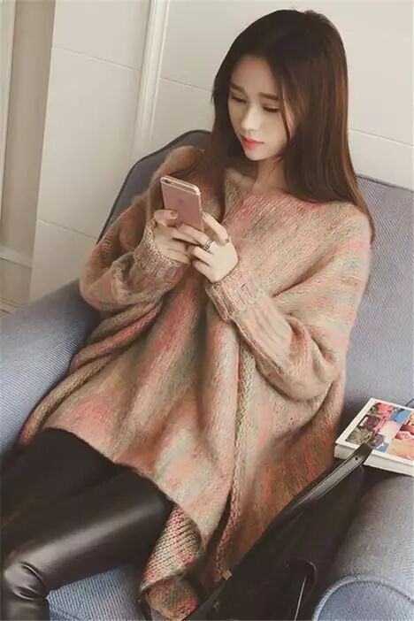 彩色蝙蝠袖斗篷宽松中长款套头毛衣外套针织衫