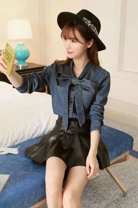 春季最爱牛仔衬衫~不管怎么搭配都好看的皮裙不用担心走光哦,有内衬的而且是安全裤内衬