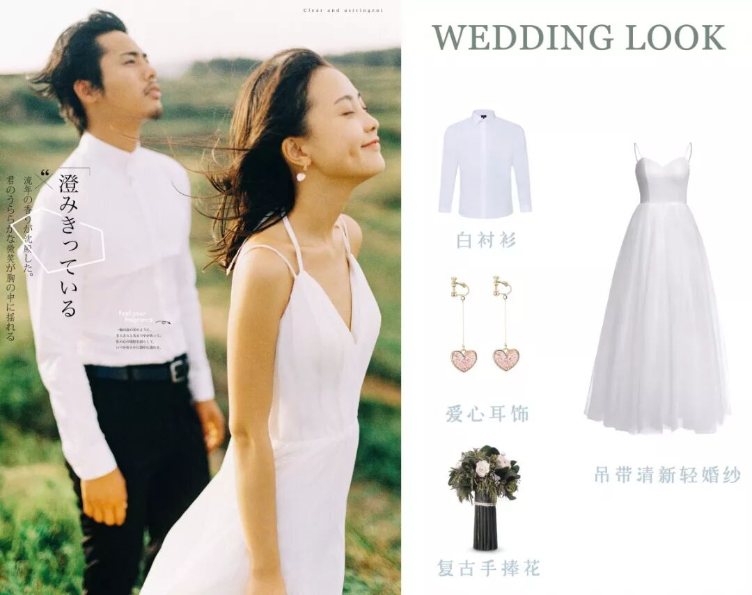 今天就来跟大家解析几组日系婚纱照的穿搭