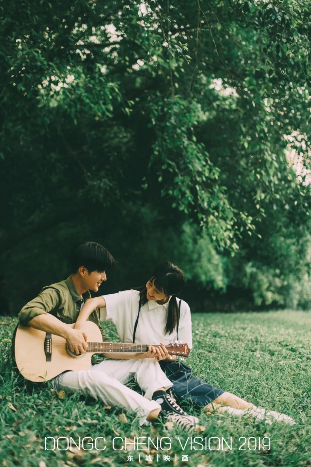 拍摄场地可以选择小公园,以草地蓝天白云做背景即可~