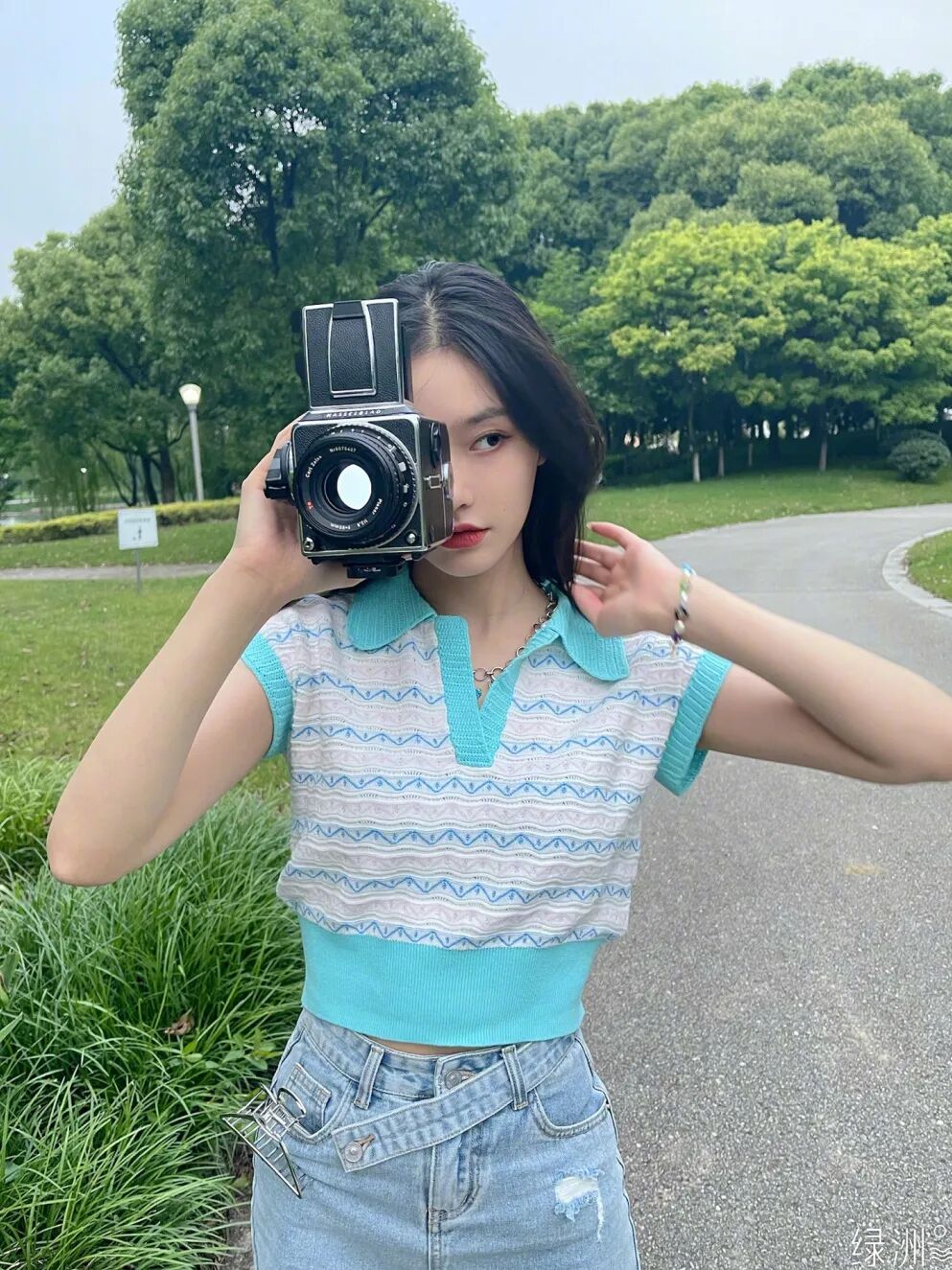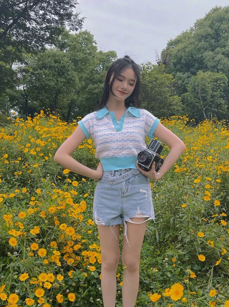 肩窄的小可爱可以试试V领泡泡袖Polo衫,和高腰牛仔裤match起来,显腿长?,青春活力超减龄,邻家妹妹既视感。鞠婧祎