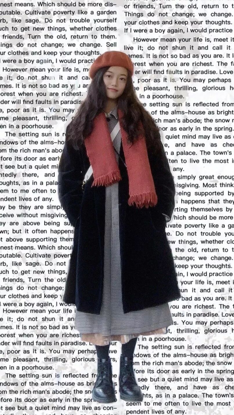 最外面的丝绒外套是在复古集市上淘来的,非常宽大,有点儿oversize,好在保暖,所以我冬天大部分时间都爱穿它。