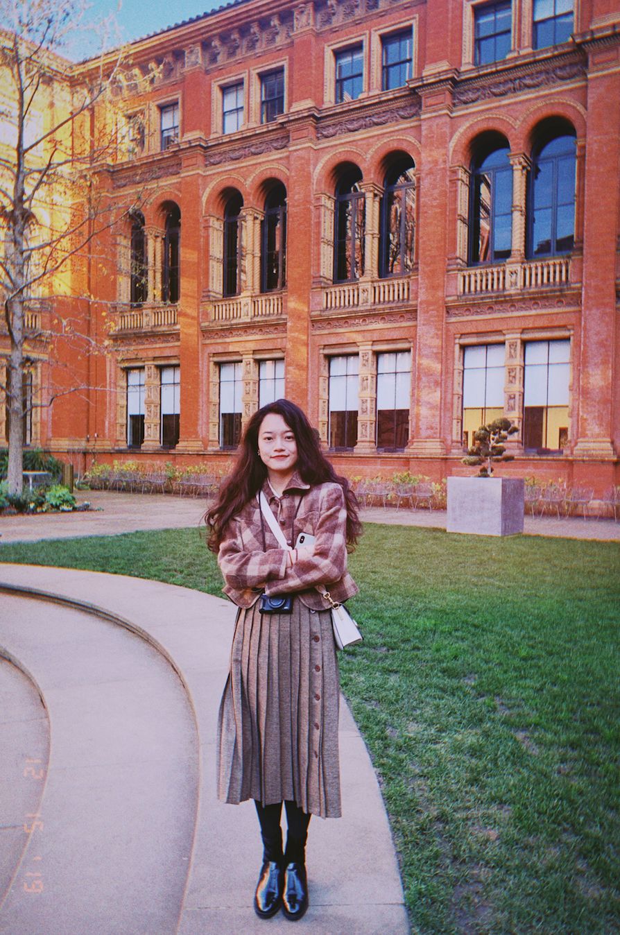 裙子是非常学院风的细格纽扣百褶裙,在伦敦知名的vintage商店Rokit买的,只花了十五镑,但这条裙子其实腰很小,只有62-65这样,刚买的时候还特别紧不怎么穿得上,瘦下来之后套上刚好合适。