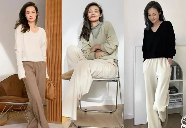 V字领毛衣V字领毛衣比较适合脖子粗短的女生,有纵向拉长脖子的视觉效果,而且比较修饰脸型,对于微胖的女生比较适合。选择V字领毛衣时,建议稍稍宽松一些,这样会更显瘦,在里面加件打底衫也不会显得臃肿。作为基础款的V领毛衣,我们可以选择经典色,比如黑白灰驼等,又显瘦又显高级。黑色V领毛衣搭配白色阔腿裤,看起来很舒服的配色,非常经典,不会过时