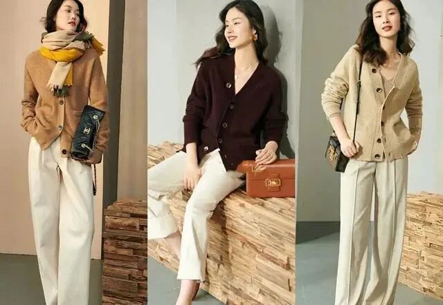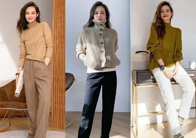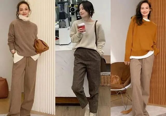 秋冬季,给人一慵懒的感觉,毛衣开衫与阔腿裤搭配起来,又舒服又有随性感。驼色毛衣开衫搭配米色阔腿裤,很治愈的配色,看起来又温暖又清新,整体宽松一些的款式搭配,给我们带来放松感,适合出游穿。好了,掌握这些搭配小技巧,让我们的毛衣穿搭更时髦高级,赶紧试着搭配起来吧,肯定会有惊喜哦!