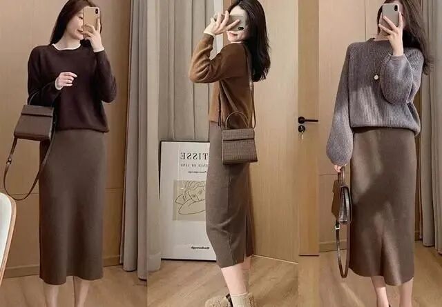 身材比较匀称的女生,建议选择毛衣+针织半裙的搭配,直筒型的针织半裙非常显身材,选择合身的毛衣搭配,又时髦又很有女人味。焦糖毛衣搭配暖咖色针织半裙,修身的设计显高显瘦,大地色系搭配起来,让人觉得温暖可爱,无论是约会还是上班,都可以穿。毛衣开衫+阔腿裤