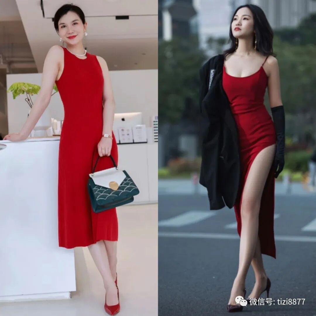 红色连衣裙配什么鞋好看,红色连衣裙穿搭技巧,红色连衣裙高级感
