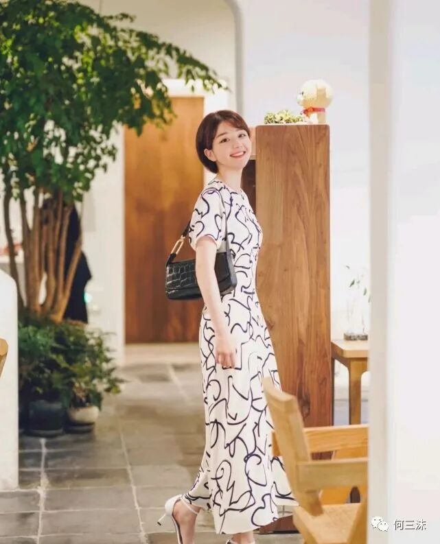 可以选择以白色为底色印有简单花纹图案的连衣裙来穿就很精致,配上合适的高跟鞋,真是越看越好看。