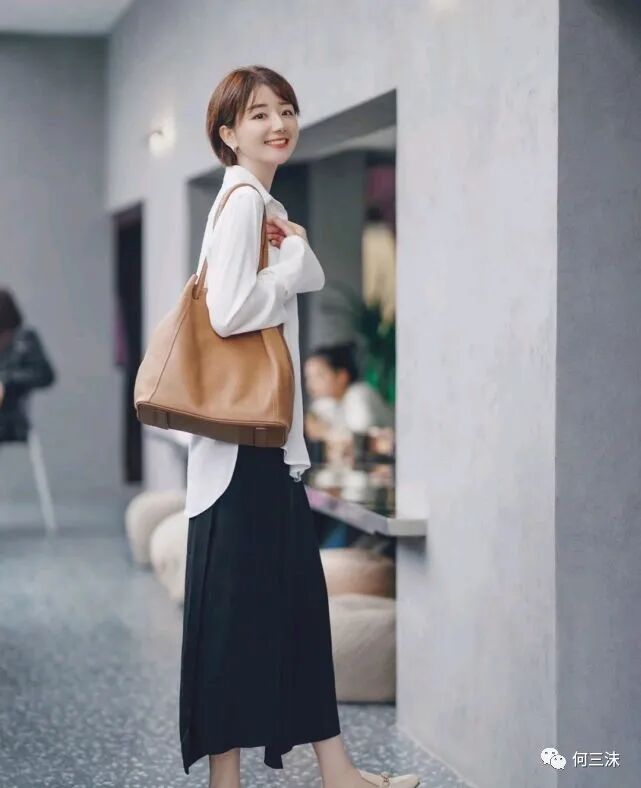 但如果想要穿出优雅的气质,可以选择白色衬衫搭配黑色半身裙,能突出女性特有的韵味和魅力。