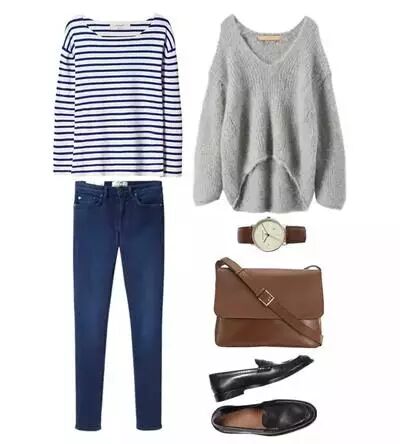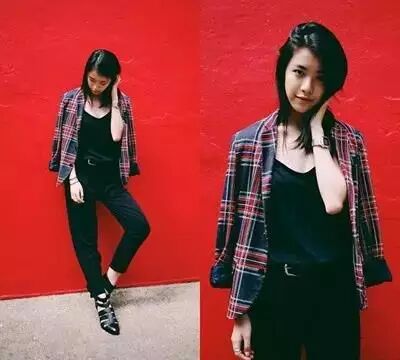 觉得上面的搭配有点单调,我们可以加入一些其他的安全色,大地色或格子条纹,或者是选择趋向更有设计感的衣服!