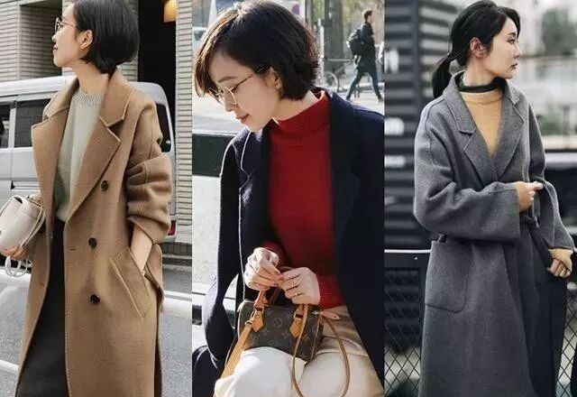 藏青色大衣是今年悄悄流行起来的单品,藏青色有一种厚重感,自带高级范,选择搭配一件番茄红高领毛衣与白色直筒裤,一点也不显得老气,反而多了温柔的女人味。