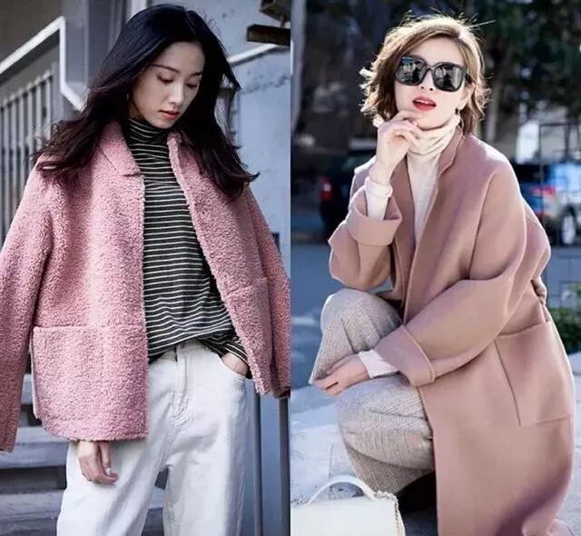 40岁后,我们可以尝试一些柔和的浅色搭配,比如樱花粉或茱萸粉,真的是非常减龄的颜色,带着一些灰调,不会显得很俗艳。短款的樱花粉羊羔毛外套搭配黑白条纹衫与白色休闲裤,相当减龄,特别适合小个子女生,优雅气质中不乏温柔少女感。